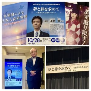 HOME > 活動報告 > 拉致問題啓発講演会 更新日:2025年11月5日 蓮池薫さんを講師に、『夢と絆を求めて』と題する24年間の拉致の現実を聞かせて頂きました。凄惨な経験には息を飲みました。より多くの方々に真実を知らせ、1日も早い帰国の実現に向け、心を一つにしなければと感じました。 Twitter Share Google+ Pocket B!Hatena LINE -活動報告